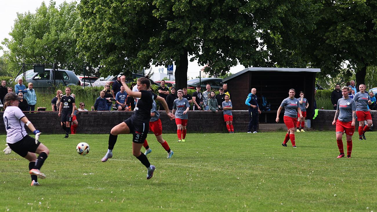 Gerade so elf Spielerinnen fanden sich zum Auswärtsspiel bei Landesligaabsteiger SV Johannstadt. Entsprechend hektisch war der Beginn, da einige Umstellungen nötig waren. Mit fortlaufender Spieldauer hatte man aber die Spielkontrolle an sich gerissen. Die erste große Chance hat Bräuer, die die Keeperin zur Glanztat zwingt. Nach einer guten Viertelstunde setzt Marschke energisch nach und provoziert so einen Ballverlust in der Abwehrreihe der Dresdenerinnen. Morche schnappt sich die Kugel und schiebt vor der Keeperin eiskalt ein. Kurz darauf kommt Bräuer erneut zum Abschluss, scheitert aber erneut an der Torfrau. Wieder wenige Minuten darauf kann Morche auf die Grundlinie ziehen und will den Ball in die Mitte flanken. Der Ball wird dabei jedoch mit der Hand einer Gegenspielerin gestoppt, die auch klar im Sechzehner stand. Der Schiedsrichter entschied jedoch auf Freistoß. Den setzt Otto knapp über das Tor. Etwa 40 Minuten sind gespielt als Morche zirka 20/25 Meter vor dem Tor an den Ball kommt. Geistesgegenwärtig bemerkt sie, dass die Keeperin zu weit vor ihrem Tor steht und schießt auf das Tor. Perfekt fliegt der Ball über die Torhüterin ins Netz. Auf der Gegenseite hat Johannstadt mehrfach die Möglichkeit zu verkürzen, aber Koser ist jedes Mal zur Stelle.