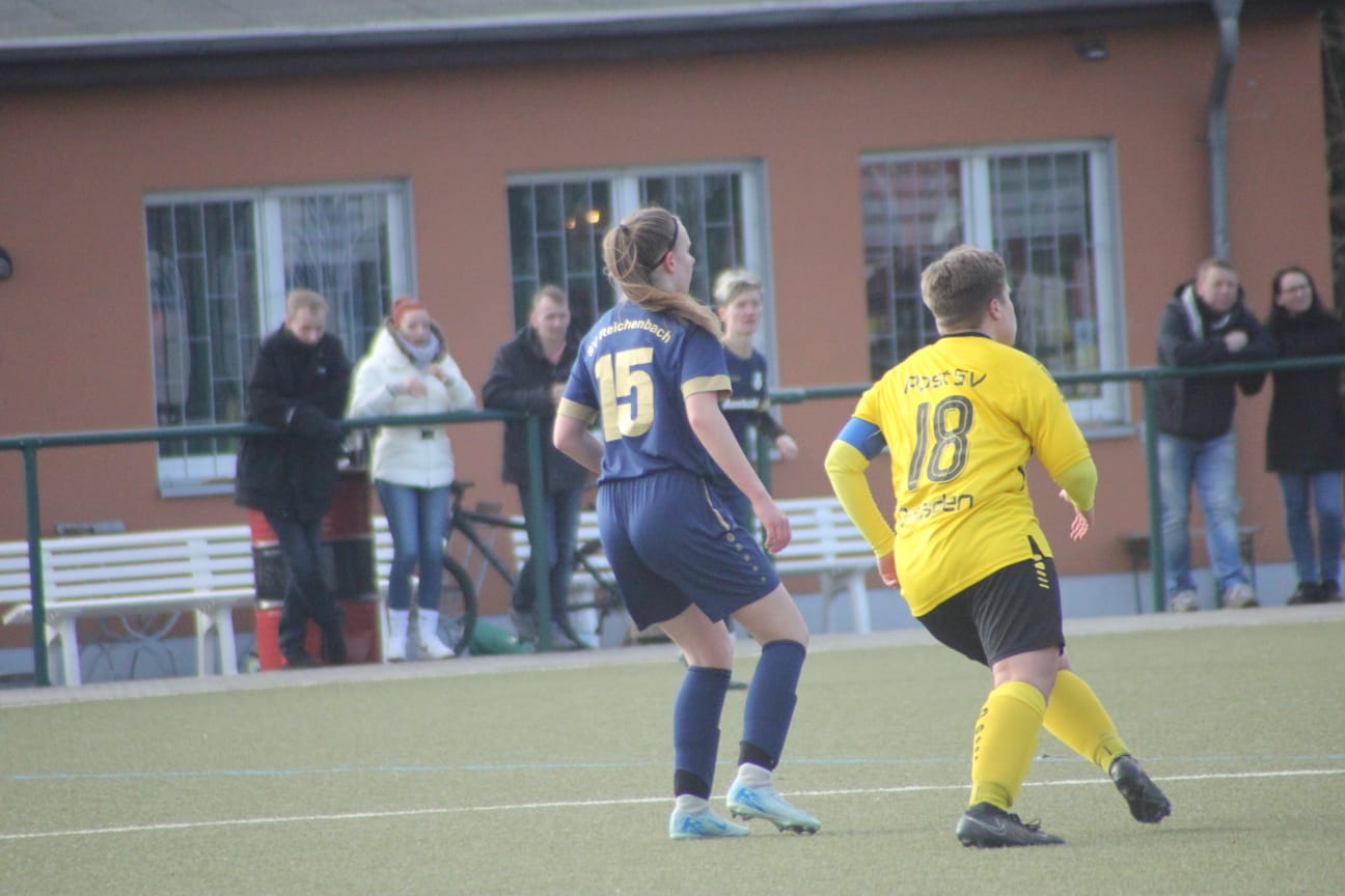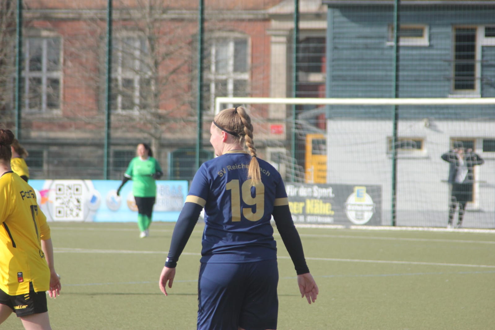Aus dieser kam Reichenbach auch wieder gut und drückte die Post in die eigene Hälfte. So sind nur sechs Zeigerumdrehungen vergangen als Bräuer im perfekten Moment den Schnittstellenpass auf Badermann spielt. Diese bleibt vor dem Tor eiskalt und schiebt in der linken Ecke ein. Kurz darauf kann Post zum Ausgleich kommen, aber Koser kommt aus dem Kasten und fängt den Steckpass im letzten Moment ab. Nur sieben Minuten später kommt Badermann auf der linken Außenbahn bis auf die Grundlinie und bedient die im Zentrum stehende Bräuer. Sie drückt den Ball dann nur noch über die Linie. Zehn Minuten später macht Badermann den Deckel drauf. Nach Ecke von Buhl kann sie den Ball aus halblinker Position über die Linie drücken. Fortan verwaltete der SVR die Führung und ließ defensiv so gut wie nichts zu. Marschke hat gar noch die Chance auf das fünfte Tor. Sie verfehlt aber knapp. Am Ende gewinnt die Spielgemeinschaft verdient in Dresden und erwartet am kommenden Sonntag erneut den Post SV Dresden. Dieses Mal aber auf der heimischen Anlage. Dort beginnt das Spiel wieder bei null. Ein nur weniger guter Auftritt als im Hinspiel könnte schon zu wenig sein, denn der Gegner erwischte auch einfach einen schlechten Tag.