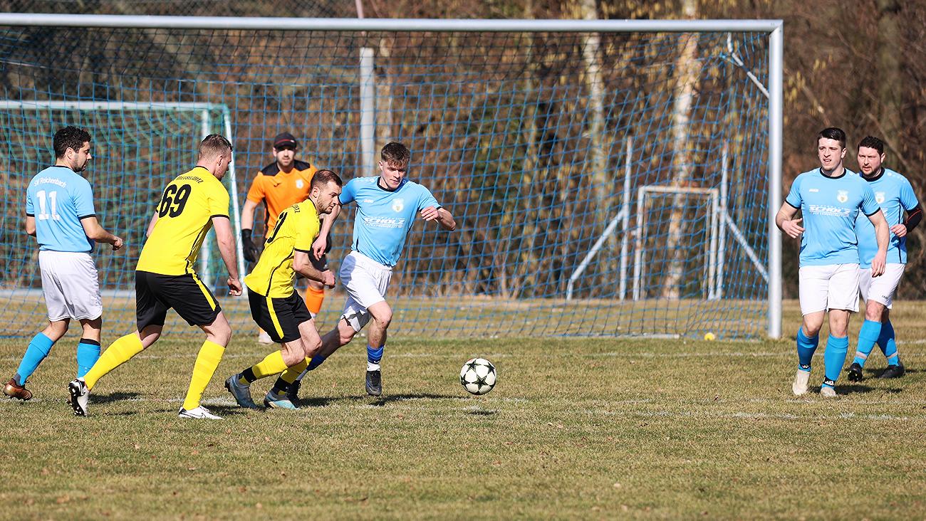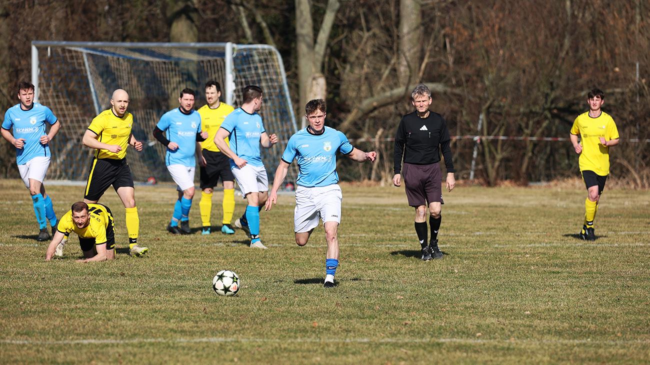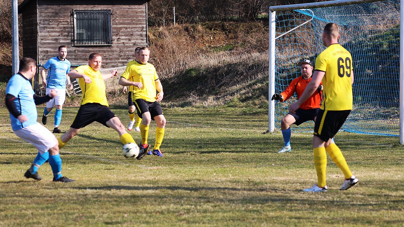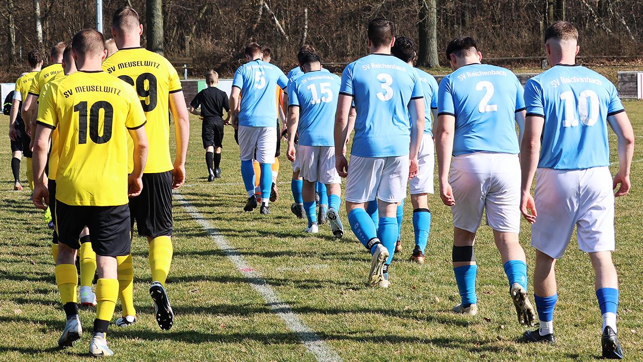 SV Reichenbach vs. SV Meuselwitz 1:1 (1:1) Am vergangenen Samstag gastierte die Mannschaft aus Meuselwitz an der Paulsdorfer Straße. Nur wenige Kilometer trennen die beiden Orte, sodass die Tabellensituation bei solchen Partien eigentlich immer völlig uninteressant ist. So sollte es auch kommen. Beide Teams kämpften um jeden Meter des Platzes. Die erste Chance hat Reichenbach als Kubiziel einen Freistoß aus 25 Metern knapp am Tor vorbeisetzt. Nach der Szene spielte sich das Hauptgeschehen aber zwischen den Strafräumen ab. Einige Zeit verstrich als eine Flanke von Kubiziel den Kopf von Schönfelder findet. Der Pablo de Blasis des SV Reichenbach drückt die Kugel aber direkt auf den Torhüter der Gäste, sodass dieser den Ball problemlos entschärfen kann. Kurz darauf steht der Reichenbacher Mittelfeldmann wieder im Fokus. Nachdem Debütant Roloff auf links bis zu Grundlinie geht, bekommt eben Schönfelder den Ball zurückgelegt. Sein Abschluss geht aber an das Aluminium. Später steckt Lange herrlich auf Roloff durch, der den Ball mitnimmt und vor dem Keeper eiskalt bleibt und den Ball einschiebt. Nach einem Foulspiel bekamen die Gäste einen indiskutablen Strafstoß zugesprochen, welchen sie auch verwerteten Kurz nach der Pause hat wieder Neuzugang Roloff eine verheißungsvolle Situation. Sein Direktschuss verfehlt aber die Stangen nur knapp. In der Folge hatte Reichenbach aber ordentlich zu tun das Meuselwitzer Bollwerk zu durchbrechen. Das sollte an diesem Tag auch nicht mehr so recht gelingen. Die Gäste verteidigten ihr Tor den Rest der Partie aufopferungsvoll und hofften über Konter doch noch für den Lucky Punch zu sorgen. Am Ende des Tages trennen sich beide Teams mit einem gerechten Unentschieden. Reichenbach hatte gerade in der ersten Hälfte mehr Chancen wusste aber nach dem Treffer nicht mehr zu überzeugen. Die Meuselwitzer warfen in Hälfte zwei alles in die Waagschale, kämpften um jeden Ball und hörten erst nach dem Schlusspfiff auf sich zu wehren. Für Reichenbach geht’s am Samstag zum Bertsdorfer SV. Anstoß ist dort um 14 Uhr. SVR: Marcus Lehmann – Fabian Winterstein (36. Tom Horlitz), Chris Gerhardt, Benni Grohmann, Leon Kubiziel (C) – Raik Schönfelder, Jakob Lange – Tom Schilling, David Schilling, Philipp Roloff – Antonio Brunetti (46. Paul Walther) Tore: 1:0 Philipp Roloff (36.); 1:1 Marcel Lehmann (43./ Foulelfmeter),Fotos: Gerd Fechner